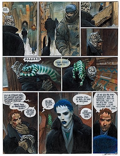 This trilogy follows journalist Jill Bioskop; Alcide Nikopol, mental patient; and Horus, the Egyptian god of fate and vengeance that’s possessing him. It’s a world filled with anxious humor and that particular brand of weirdness that’s a hallmark of so many Euro magazines. The plot is somehow both a familiar pairing of sci-fi genre with dystopian politics and the deeply strange. A mix of cyberpunk, the old joke about when Jesus talks back, space travel, and… building codes?