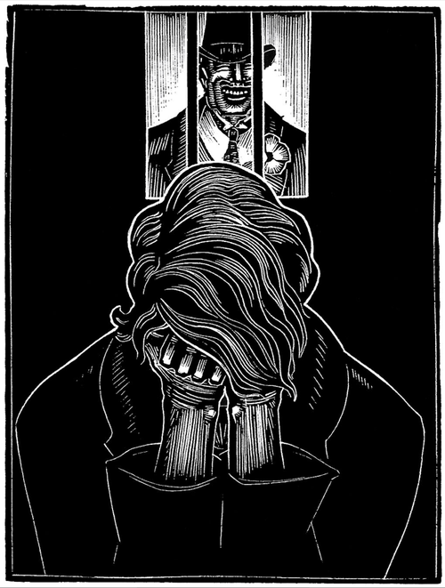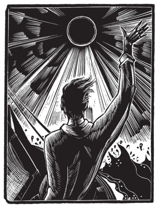 Ward, a Chicago-based artist, created this book using woodblock printing techniques that dated back to 220 CE. Created in 1929, God’s Man is certainly the first graphic novel created by an American, and maybe even the first in the world. It’s also startlingly gorgeous, feeling like a cross between The Cabinet of Dr. Caligari and a KMFDM album cover.