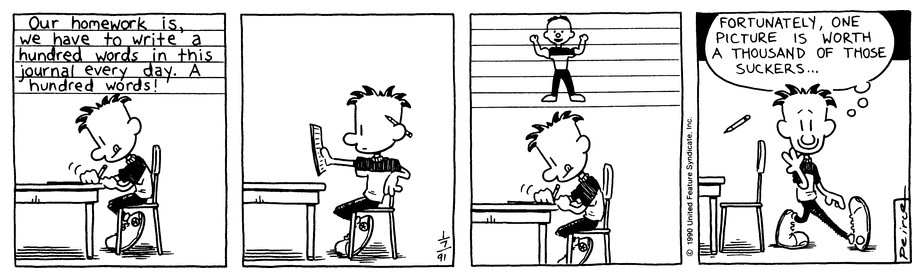 For those under the age of a million, Sunday strips refer to special weekly version of a newspaper that included a much larger selection of comics, usually in color (as opposed to the shorter black-and-whites of the work week). If you’re ever reading Calvin and Hobbes, or here Big Nate, this is why strips are typically black-and-white and 3 to 4 panels, whereas Sundays are full page color extravaganzas! Now if you’ll excuse me, I need to take out my dentures, eat some soup and lay down for bed at 7 p.m.
