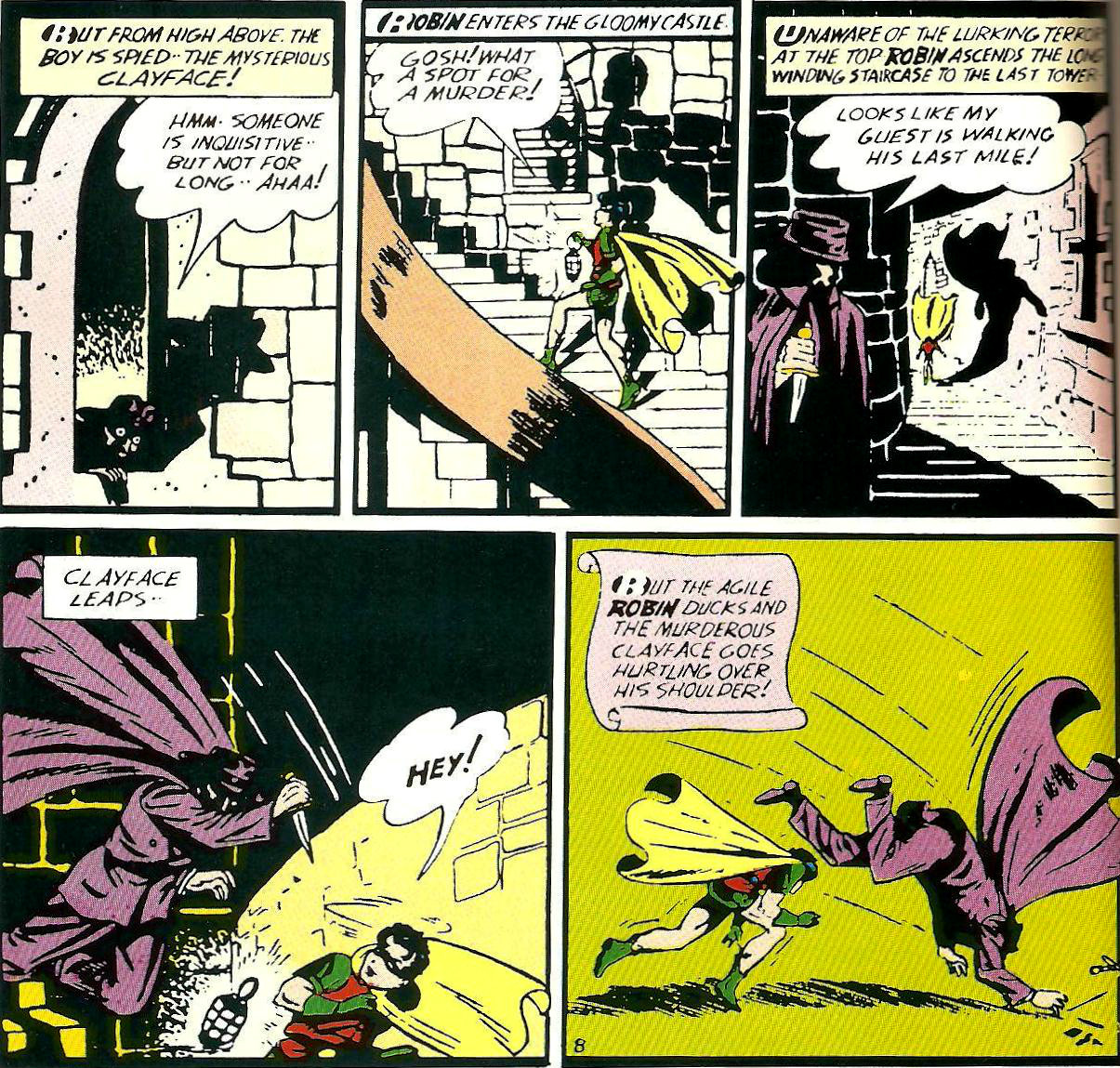 Introduction of the original Clayface, Basil Karlo, by Bill Finger, Bob Kane, and Jerry Robinson.