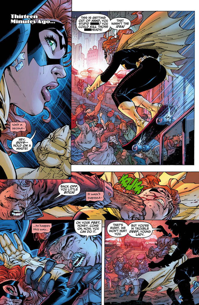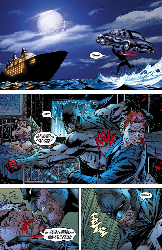 The writing is inexplicable, like Miller’s trademark “tough guy” hero had become the sad, middle-aged drunk gone pathetic attempting to prove he’s still got it. Lee, for his part, isn’t much better. Lee’s work is anatomically sound, his linework clean, his faces clear. But it’s all so inanimate. It feels like Hush leftovers mixed with the awkward sexiness of 90s X-Men.