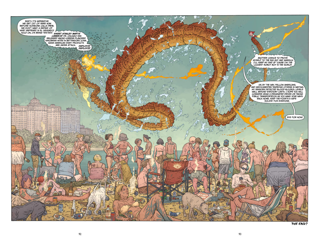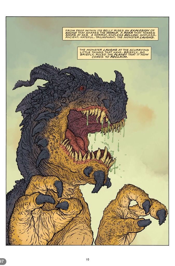 Geoff Darrow’s work is as spectacular as always, and maybe the biggest selling point to the book. The man skips no corners, drawing every scale, every rivet, every tongue of flame.