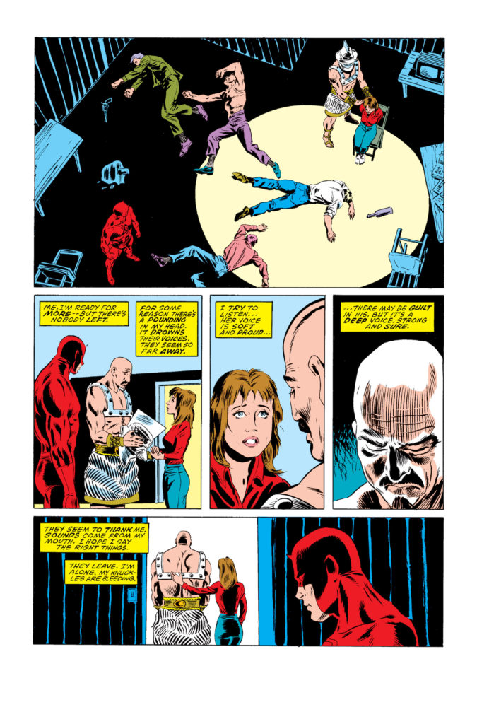 By the end, Matt Murdock is gone. His job gone, his friends no betrayers, his faith lost. Even though Matt Murdock wins in the end, he loses. There is only Daredevil left, a damaged man who is now truly without fear.