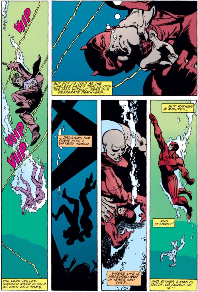 The legend goes that Miller wanted Superman. He loved the character so greatly it was his only choice. So, DC thinks about putting the hottest writer going on their biggest icon. Then they took a look at Daredevil’s world of death, heroin-addicted call-girls, and complete depression and said “okay, anything except Superman.”