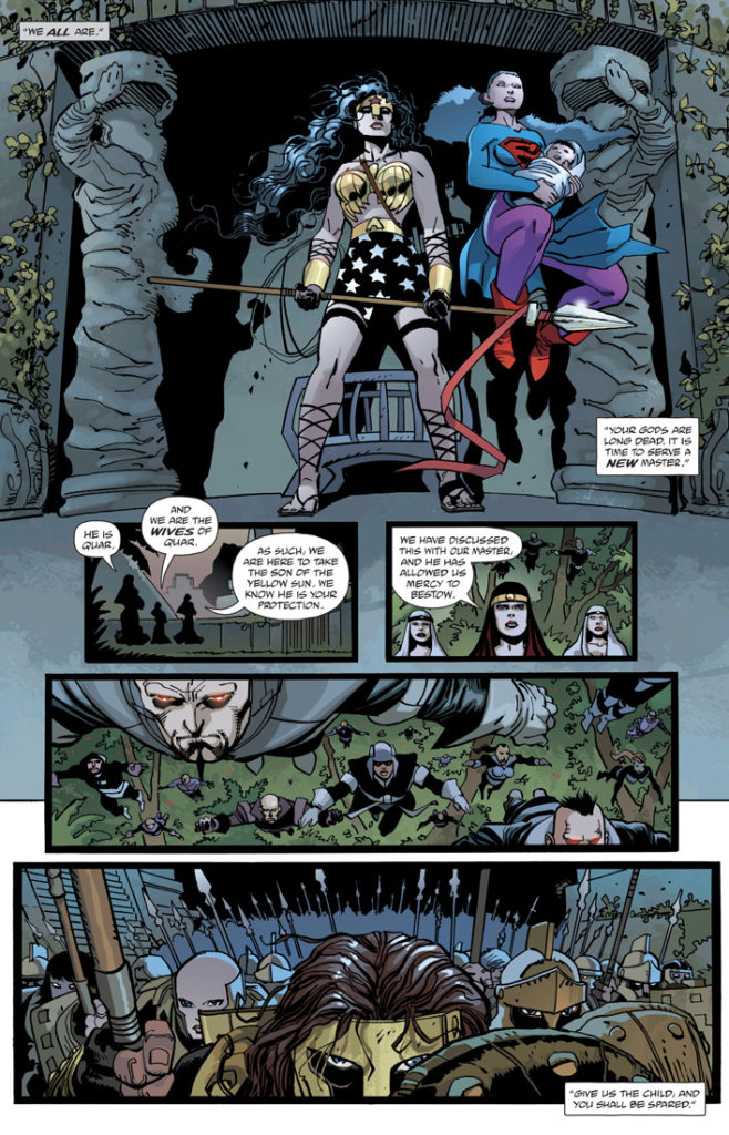 Miller stated this book is meant to tie into the Batman: Year One / Dark Knight Returns universe, but there’s nothing to indicate that. There’s no specific time period to link it. Tonally it’s a mess. And thematically it’s completely galling. Why on Earth would Kal El join the military special forces? Why would he ever use a gun? And wouldn’t his Kryptonian physiology demoralize the entire detachment? Don’t even get me started on the dialog.