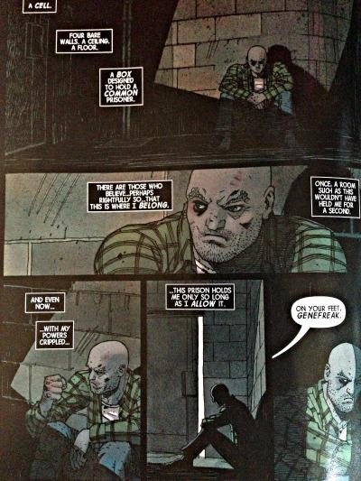 The doubling up on artists and color artists in this book really grinds my gears. When a script calls for a lot of different perspectives and possible time jumps like flashbacks and forwards, I understand the idea behind employing multiple artists to convey the differences. But a story that is centered around a single character, and told mostly from his own thoughts, should not go down that road, and it’s evident even to the casual reader that the two styles don’t really coalesce. The subtle darks and shadows of the first few pages are in stark contrast to the fight sequences that have more defined shading and manic lines. I am not saying that either artist is better or worse, but the story told by one team and not two would have worked a lot better.