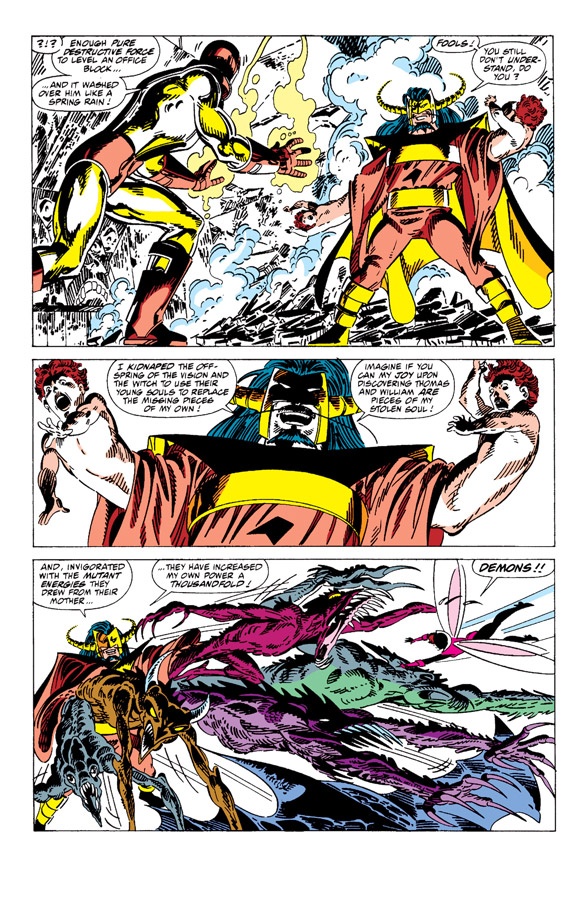 If Wanda were a male character, writers would have focused on her struggle with Chthon, and used that to give her narrative direction and focus, as well as give her a personal narrative. Every hero needs a villain and Chthon fits Wanda perfectly. Robinson should have made Chthon central to his solo, but didn’t, maybe because he was not allowed to (Carnage was using Chthon at the time). It boggles the mind that she has had no proper interaction with Chthon despite him being, alongside Vision, the most important figure in her life. Chaos Magic has a logical structure, and the in-built limitation of using it too much allowing Chthon to exert influence. There, fixed it for you.