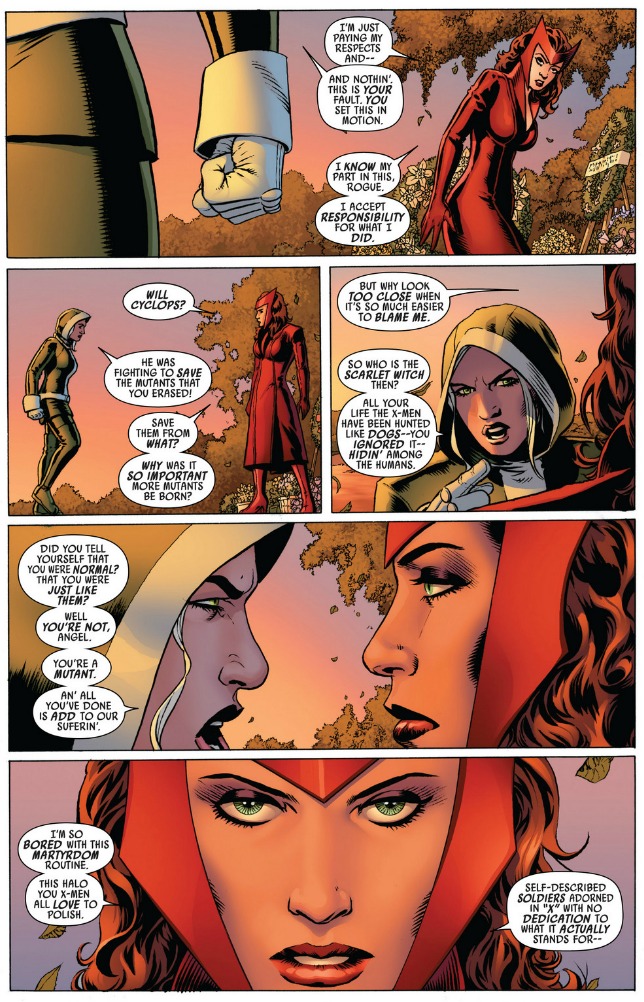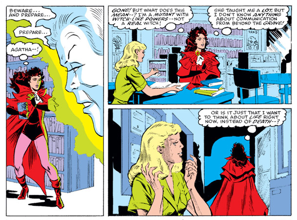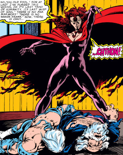 The lore surrounding witchcraft, chaos magic, and Chthon, the Elder God’s, that is a rich seam that should be the focus of her character, not using her as a source for Magneto’s man-pain or as a plot device so Wolverine can look cool.