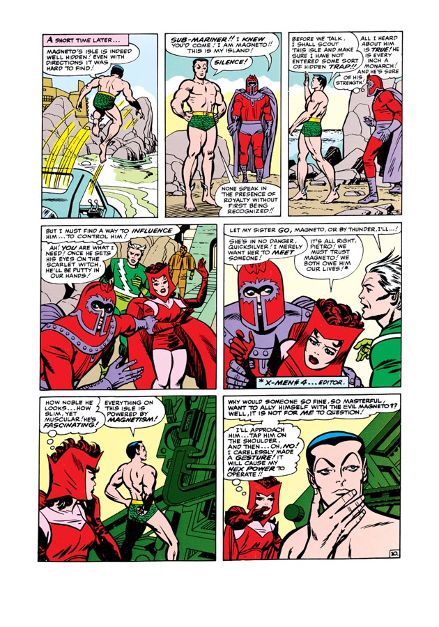 Scarlet Witch debuts in The X-Men #4, making her a creation of Lee and Kirby themselves. To start, her power was very nearly undefined. Scarlet Witch would wave her hand and, intentionally or unintentionally, whoever or whatever she waved at would suffer “bad luck.”